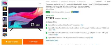 🔥Thomson Alpha 80 cm (32 inch) HD Ready LED Smart Linux TV 2022 Edition @Rs.7999👉 is available on Flipkart.