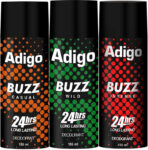 adigo Buzz Wild| Casual | Intense 24hrs Long Lasting Deodorant | 165ml Each Deodorant Spray – For Men(165 ml, Pack of 3)