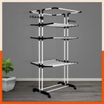 Bathla 4 Level Modular Cloth Drying Stand with Wheels – Rustproof Portable Steel Laundry Rack (Black – Extra Large) – Clothes Dryer for Balcony, Indoor & Outdoor Use