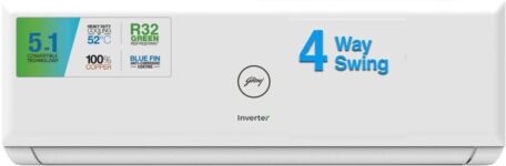 Godrej 5-in-1 Convertible Cooling 2023 Model 1.5 Ton 4 Star Split Inverter with 4 Way Swing and Tri Filtration System AC – White(EI 18PINV4R32-WWP, Copper Condenser)