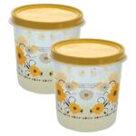 Heart Home Storage Container|Durable Plastic Floral Design BPA Free Food Kitchen Organizer with Lid|Food Utility Jar, 7 LTR, Pack of 2 (Yellow)