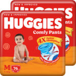 Huggies Comfy Baby Diaper Pants, Upto 50% Faster Absorption (76 X 2) – M(152 Pieces)