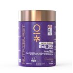 Nutriburst Biotin Gummies for Hair Growth | 10mg Biotin from 500,000 mcg Sesbania Extract | Cranberry Flavour | Stronger, Shinier Hair | No Added Sugar | 30 Days Pack is available on Amazon at best discounted online price. Original price of this product is ₹ 799. You can buy this product at discounted rate ₹ 299.