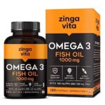 Zingavita High Strength Omega 3 Fish Oil 1000mg (120 Capsules), Mercury Free Formula for Healthy Heart, Joints & Eyes for Men & Women, 4 Months Supply